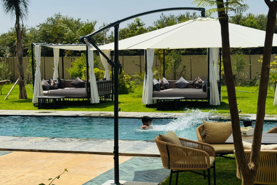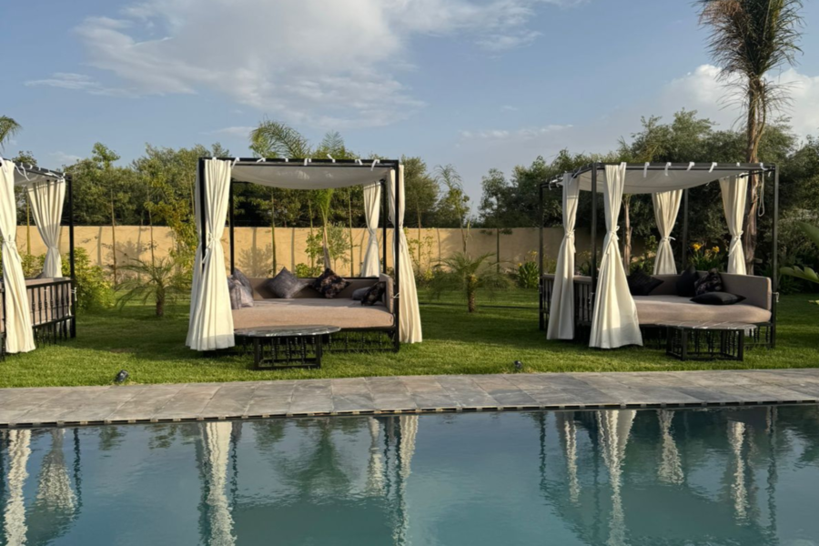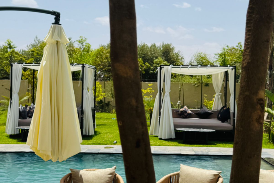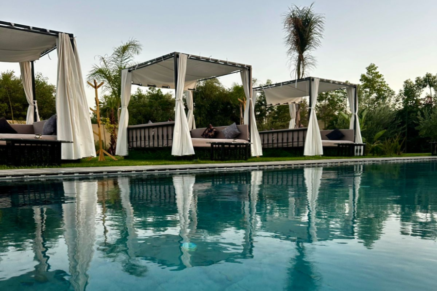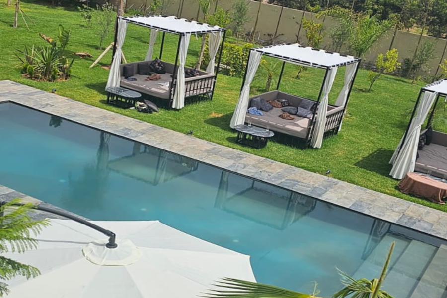 Plongez dans notre superbe piscine, entourée de jardins pittoresques, et profitez du soleil pour un teint hâlé parfait ! Après votre baignade rafraîchissante, offrez-vous un moment de bien-être au spa avec un hammam traditionnel, un gommage tonifiant et un massage apaisant qui vous laissera une sensation de bien-être et de ressourcement.