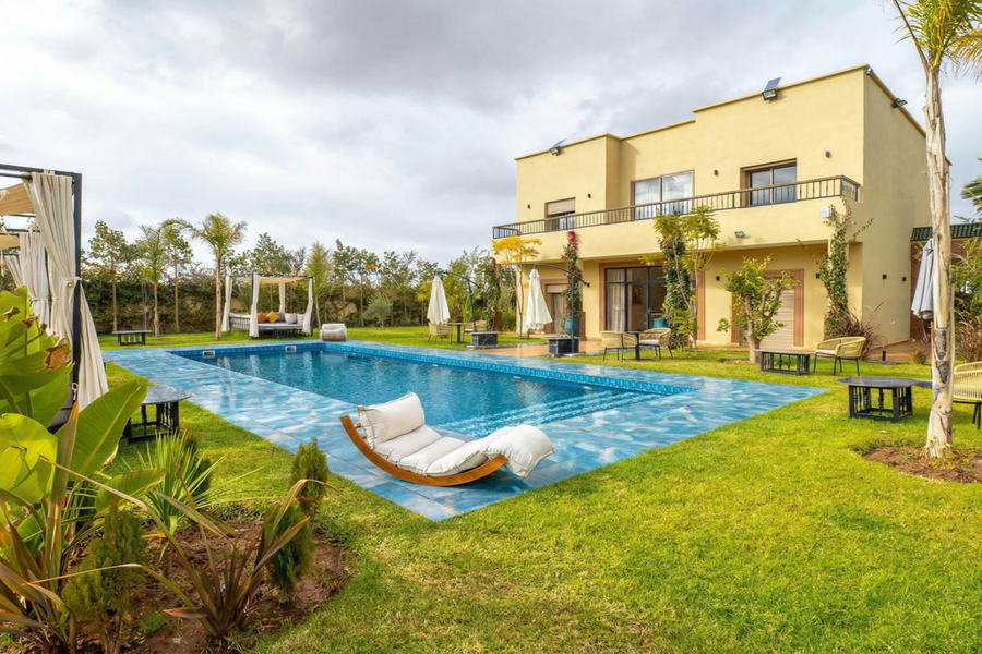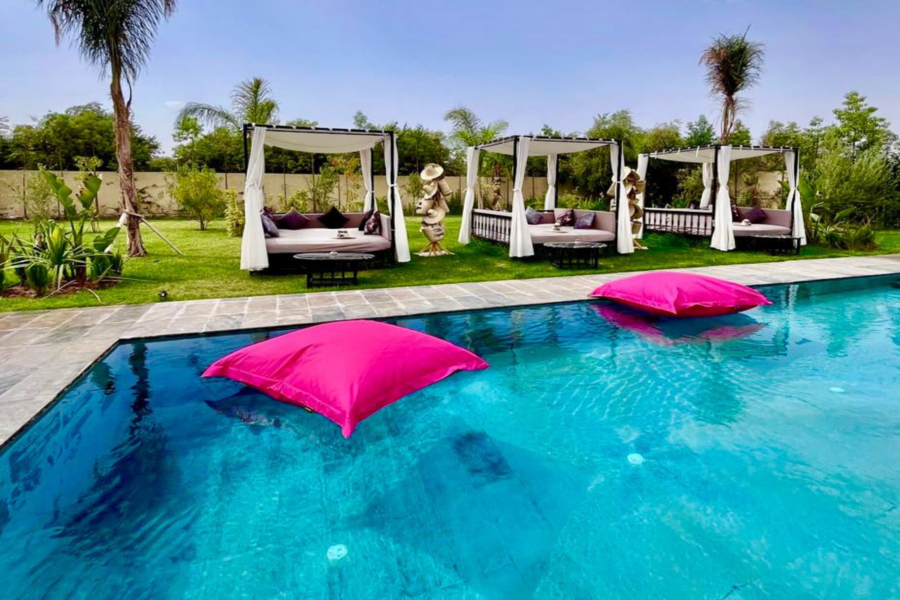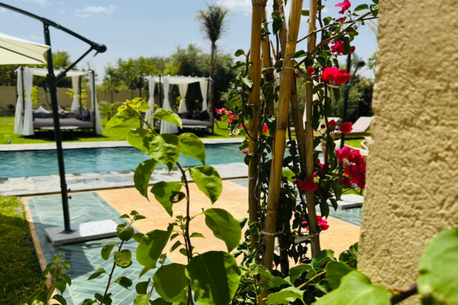 Détendez-vous dans notre villa ensoleillée : baignade, spa et déjeuner gourmand avec vue imprenable sur l'Atlas