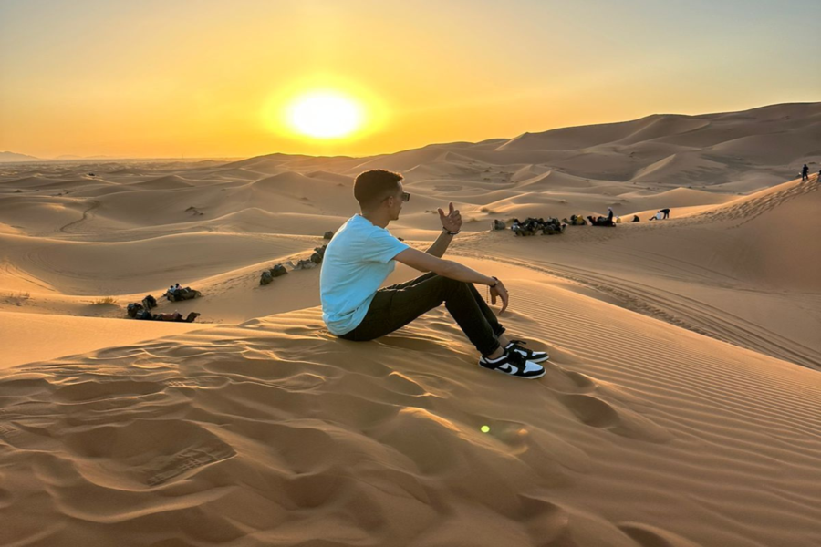 • Faire une jolie balade à dos de chameaux à merzouga et admirez une vue panoramique et imprenable.