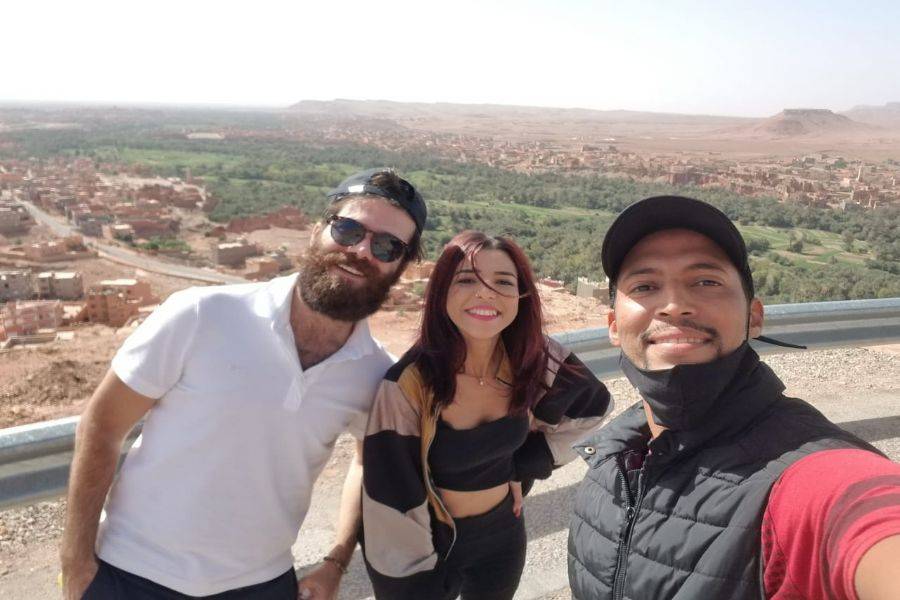 Réveillez-vous le matin, détendez-vous et profitez du village calme tout en savourant un délicieux petit déjeuner dans le riad, préparez-vous à prendre la route vers une autre aventure. En passant de Bomalen Dades pour voir les autres belles gorges, laissez-vous surprendre par la belle forme de la montagne et le calme. Notre prochaine visite sera la vallée des roses, lieu étonnant tous les mois d'avril et mai, 3000 à 4000 tonnes de fleurs sauvages sont récoltées dans la vallée des roses, et si vous êtes chanceux, vous rencontrerez cet événement pour en profiter avec la population locale . Arrivez à Ouarzazate en observant les changements du paysage au sein de la route, découvrez la ville avec notre chauffeur, nous visiterons le studio de cinéma international qui est célèbre par la production de nombreux films historiques tels que The Game of the Thrones et plus, en direct un décor de cinéma à l'intérieur de cet endroit, puis nous nous dirigerons vers Ait Ben Haddou pour profiter d'un séjour en demi-pension avec un délicieux dîner.