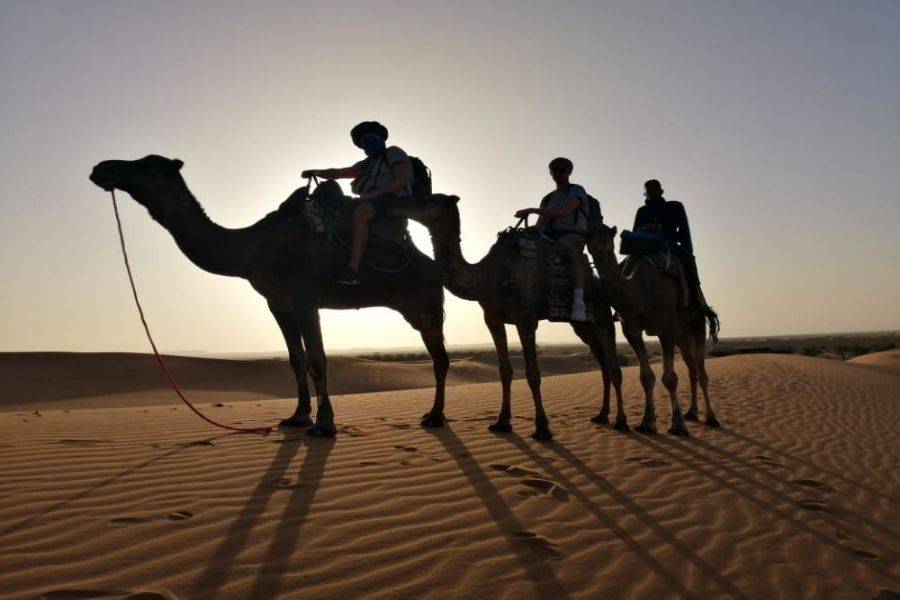 Départ de Merzouga avec un grand moment le matin et avec un délicieux petit déjeuner et lever de soleil. Le truc préparera une balade à dos de chameau pour vous permettre d'atteindre Merzouga. Et avec une salutation, nous quitterons cet endroit magnifique et incroyable. Nous passerons d'Errissani pour visiter le souk traditionnel puis nous nous dirigerons vers Errfoud où vous aurez une visite aux fossiles et en savoir plus sur les très anciens objets de ce village. Goûtez à la gastronomie marocaine tout en savourant votre déjeuner dans l'un des bons restaurants de la route. Découvrez l'oasis de Tafilalt jusqu'à ce que vous arriviez aux gorges du Todra, laissez-vous surprendre par la nature calme et large de cet endroit, et profitez également en prenant quelques photos entre les deux gorges. Ensuite, dirigez-vous vers Tinighir qui est un petit village berbère, en savoir plus sur la culture berbère et passez une nuit dans l'un des riads confortables avec un délicieux dîner.