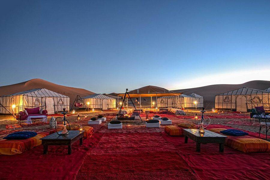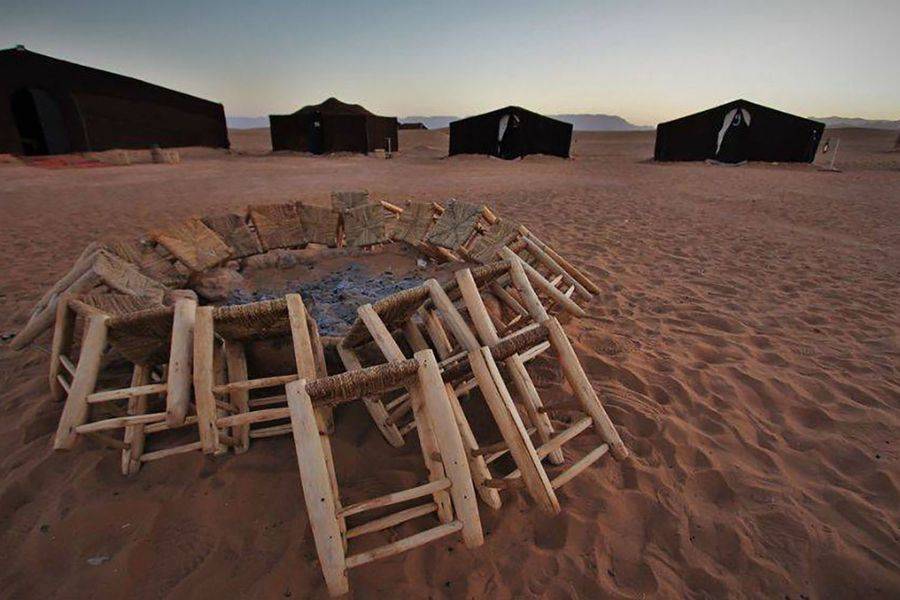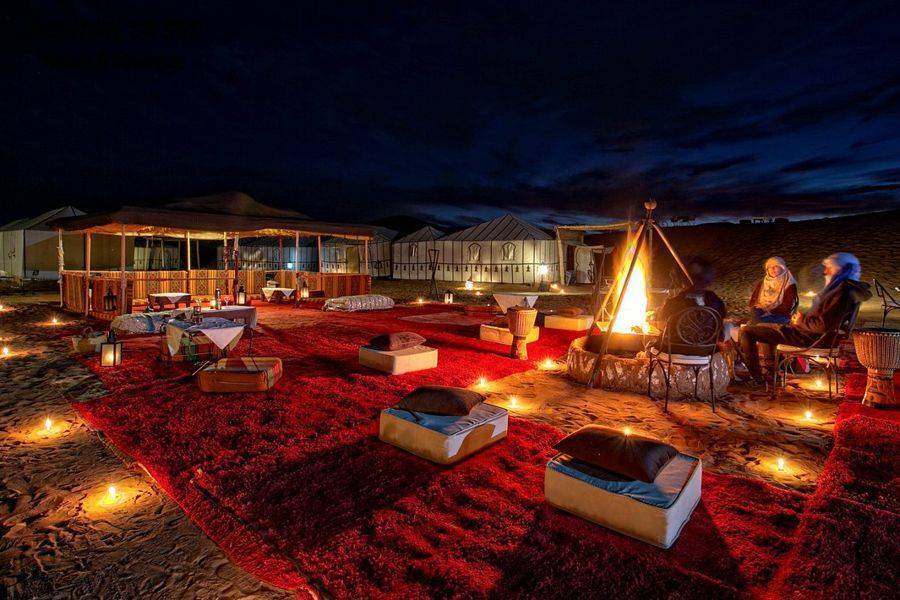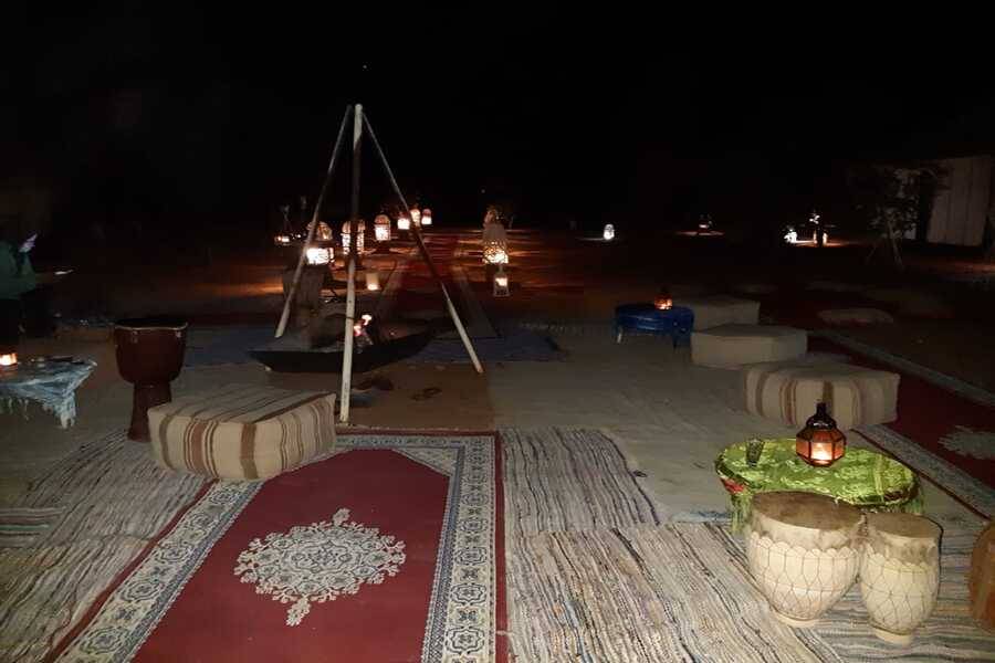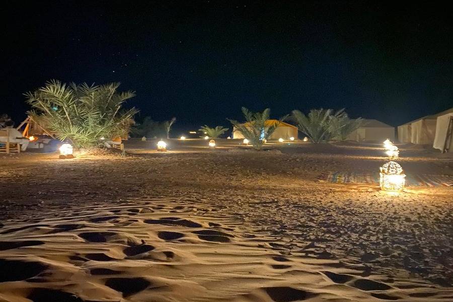 • Dirigez-le avec une balade à dos de chameau pour atteindre votre bivouac avec un joli désert.