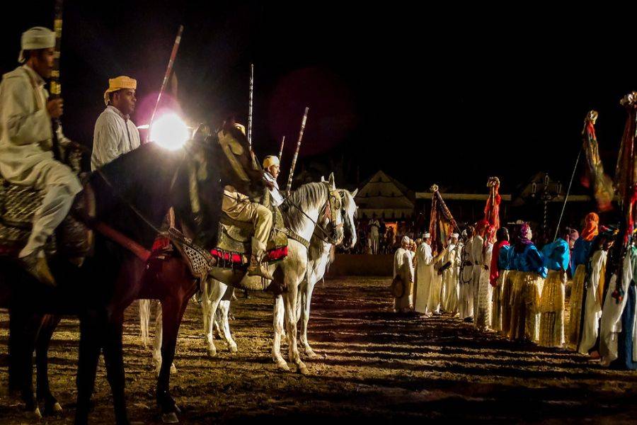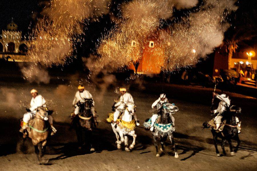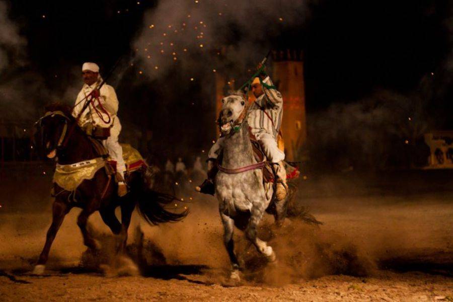 • Regardez les cavaliers de la cérémonie de guerre Fantasia s'affronter devant vous