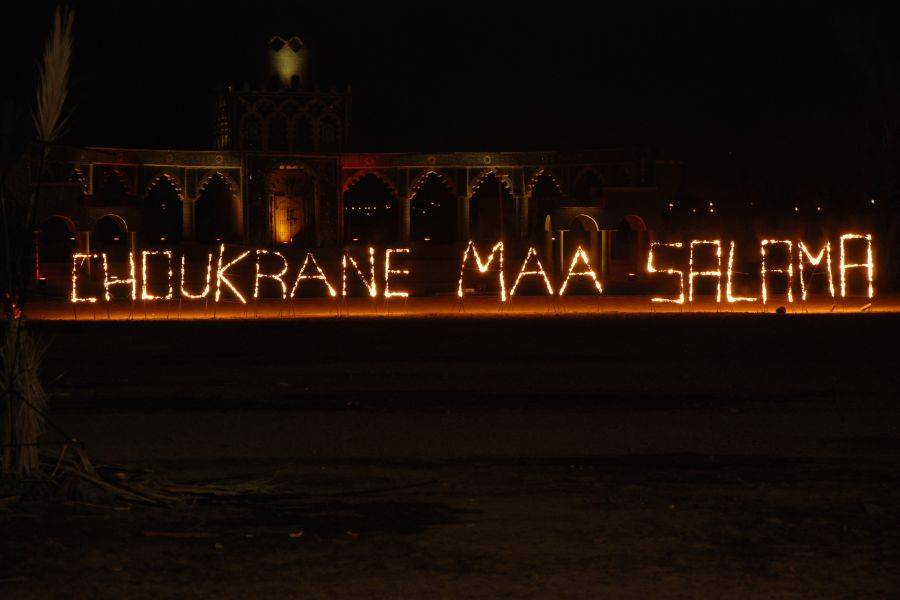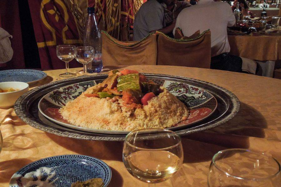 • Asseyez-vous pour un festin de plats marocains traditionnels nichés dans une palmeraie