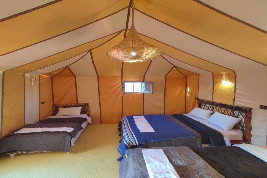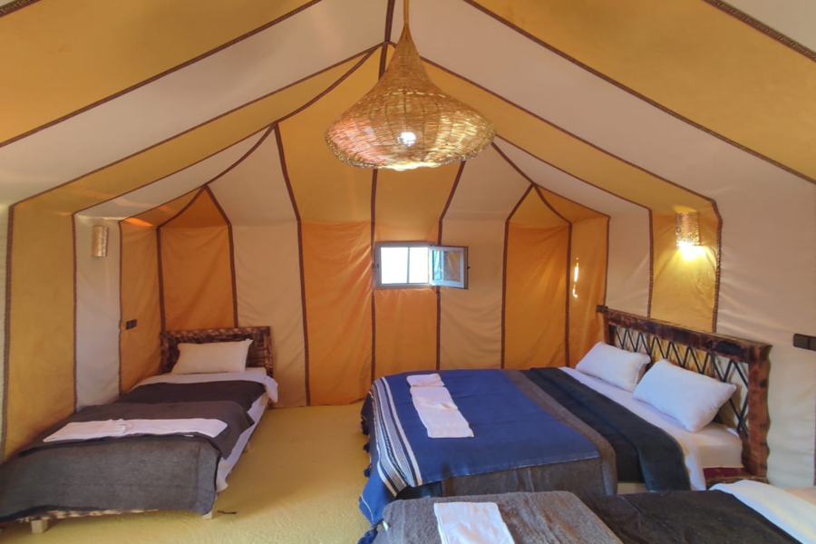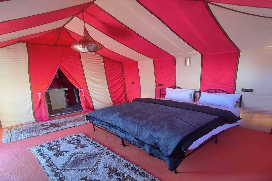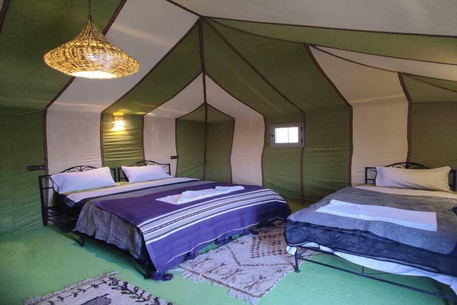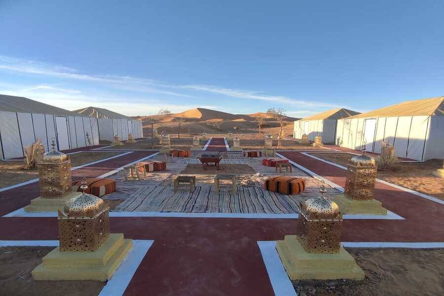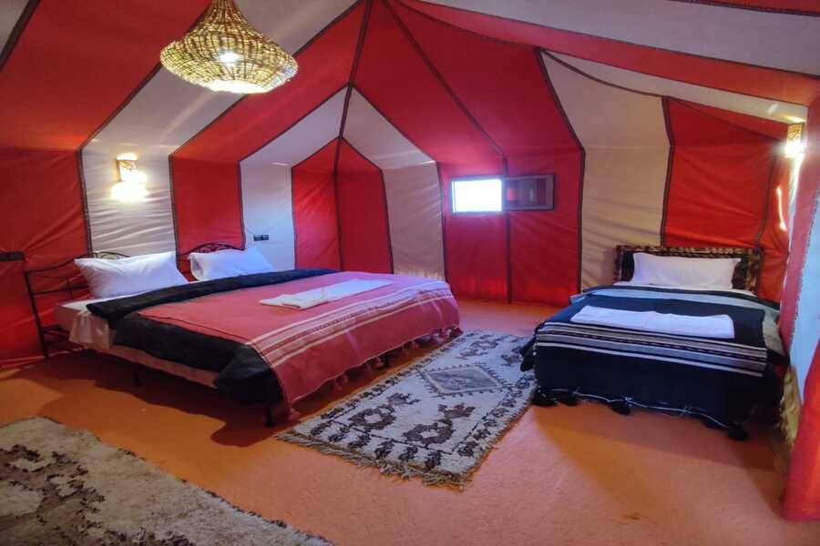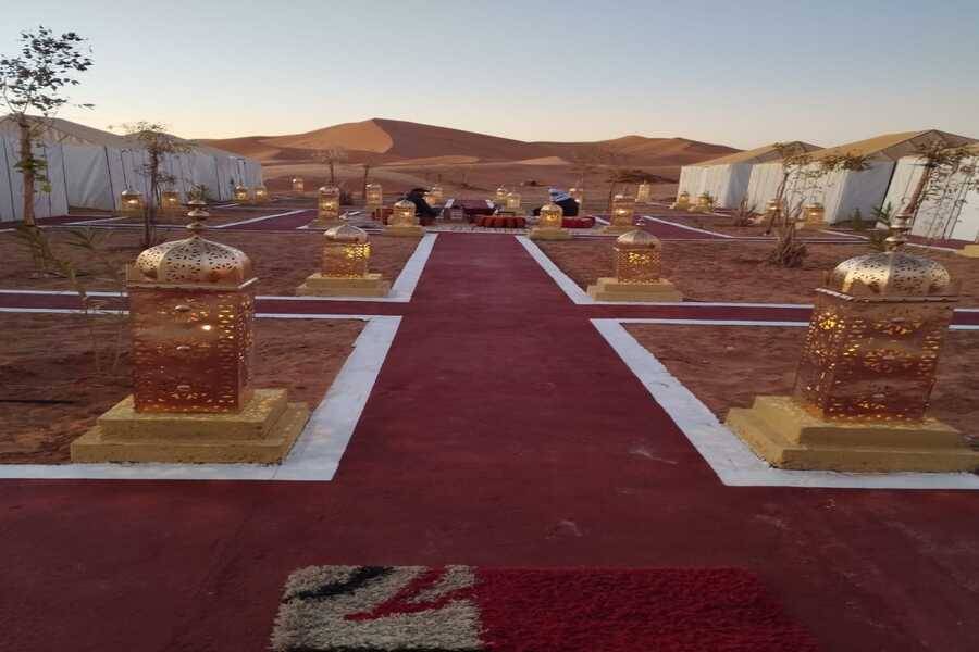 Retrouvez notre chauffeur qui vous attend à votre hébergement à Fès tôt le matin pour vous diriger vers l'un des plus beaux désert du Sahara Voyage à Marrakech, profitez du confort du véhicule tout en passant d'un paysage magnifique sur la route, vous pouvez demander à notre chauffeur de arrêtez-vous si vous avez besoin d'une pause. Il est possible pour vous de trouver un endroit pour déjeuner à Ifrane qui est la plus petite belle ville du Maroc qui ressemble à une petite Suisse, ou vous pouvez également prendre des photos mémorables sur la route menant à Merzouga. Lorsque nous passerons de Midelt et d'autres villes et villages magnifiques avec une grande nature de palmiers et de montagnes incroyables, vous arriverez à l'entrée du désert pendant que vous rencontrerez notre personnel pour vous faire vivre un moment merveilleux en montant à dos de chameau camp désertique, en ce moment, rencontrez les nomades et en savoir plus sur leur culture, séjournez une nuit à l'intérieur du bivouac et sous le bleu foncé et les étoiles scintillantes.
