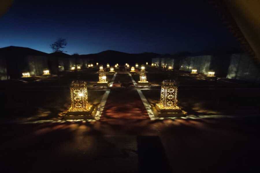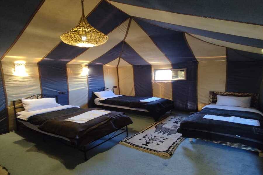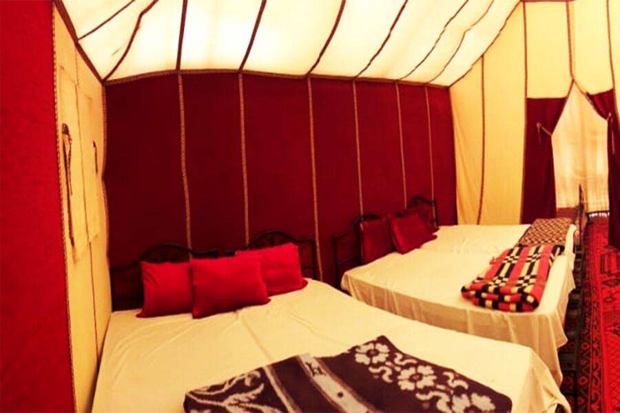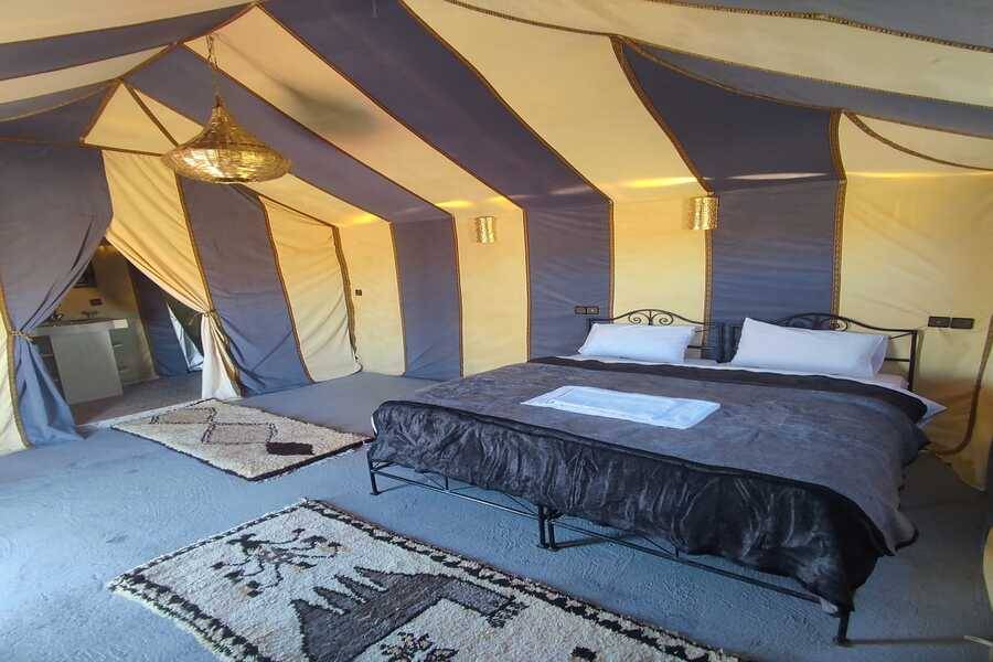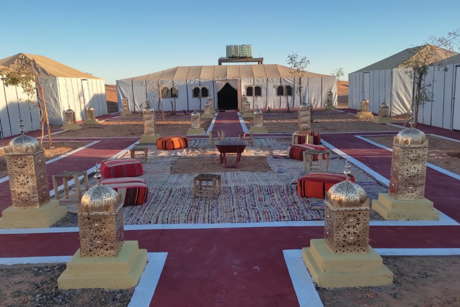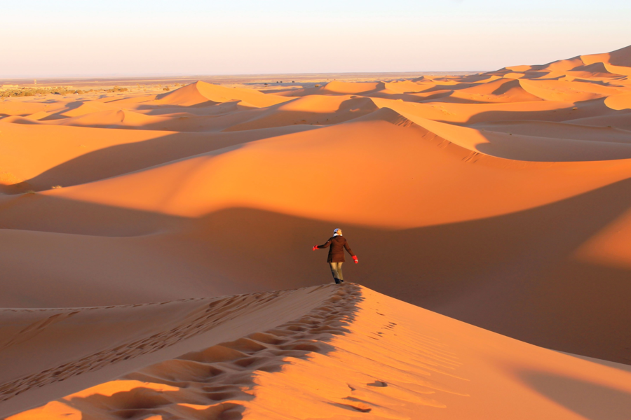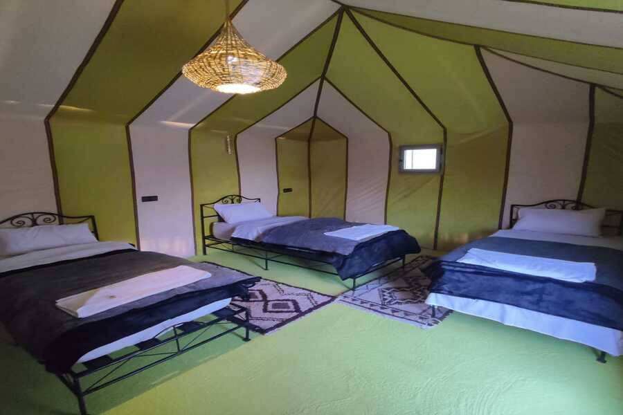 Retrouvez notre chauffeur qui vous attend à votre hébergement à Fès tôt le matin pour vous diriger vers l'un des plus beaux désert du Sahara Voyage à Marrakech, profitez du confort du véhicule tout en passant d'un paysage magnifique sur la route, vous pouvez demander à notre chauffeur de arrêtez-vous si vous avez besoin d'une pause. Il est possible pour vous de trouver un endroit pour déjeuner à Ifrane qui est la plus petite belle ville du Maroc qui ressemble à une petite Suisse, ou vous pouvez également prendre des photos mémorables sur la route menant à Merzouga. Lorsque nous passerons de Midelt et d'autres villes et villages magnifiques avec une grande nature de palmiers et de montagnes incroyables, vous arriverez à l'entrée du désert pendant que vous rencontrerez notre personnel pour vous faire vivre un moment merveilleux en montant à dos de chameau camp désertique, en ce moment, rencontrez les nomades et en savoir plus sur leur culture, séjournez une nuit à l'intérieur du bivouac et sous le bleu foncé et les étoiles scintillantes.