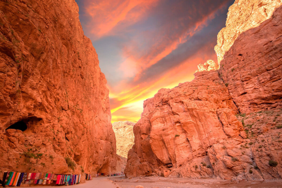 Après le petit déjeuner au bivouac, quittez le camp du désert avec des moments incroyables créés et dirigez-vous vers Errfoud où vous aurez une visite des fossiles et en savoir plus sur les très anciens objets de ce village, ensuite vous le dirigerez vers Tinjdad et avoir une idée du paysage saharien. Goûtez à la gastronomie marocaine tout en dégustant votre déjeuner dans l'un des bons restaurants de la route. Découvrez l'oasis de Tafilalt sur la route jusqu'à ce que vous arriviez aux gorges du Todra, laissez-vous surprendre par la nature calme et large de cet endroit et profitez également en prenant quelques photos entre les deux gorges. Ensuite, dirigez-vous vers Tinighir qui est un petit village berbère, en savoir plus sur la culture berbère et passez une nuit dans l'un des riads confortables avec un délicieux dîner.